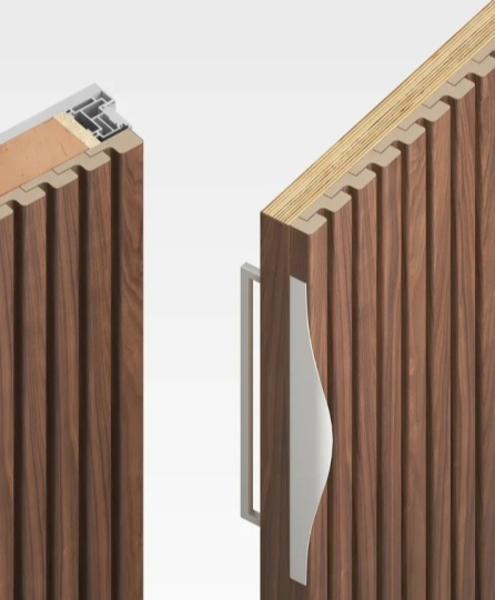 - торец двери сочетается с облицовкой реек, что обеспечит идеальную эстетику и привлекательный внешний вид;