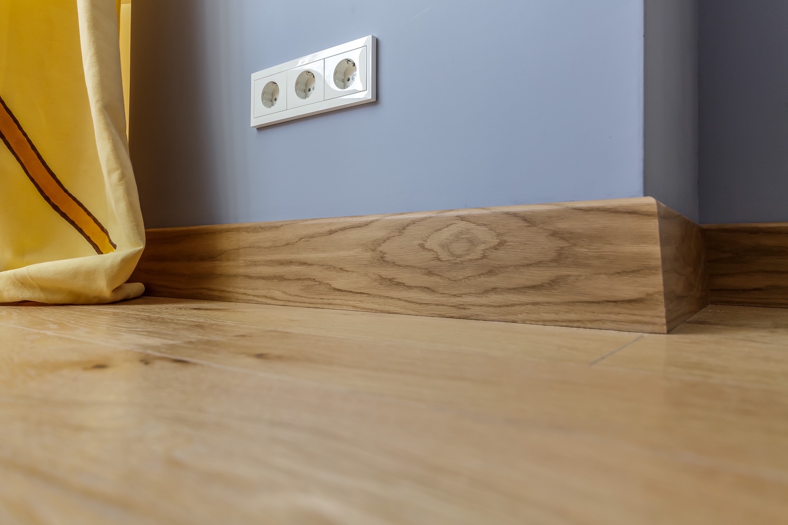 «евро» плинтус 120 мм. Материал — шпон. Цвет — натуральный дуб.
